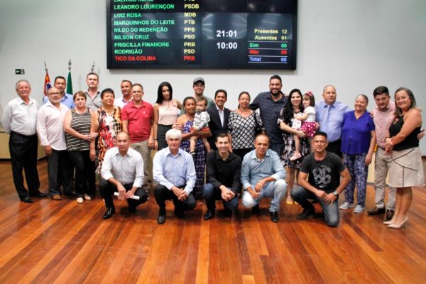 Os vereadores também disseram “sim” ao Projeto de Lei 5/2019, do parlamentar Helinho (PTB), que denominou o Centro de Referência de Assistência Social (Cras) do bairro Santo Antônio de “Cras Vereador Valdomiro Mendes de Souza”. Parentes do antigo parlamentar compareceram à sessão e foram saudados pelos vereadores.