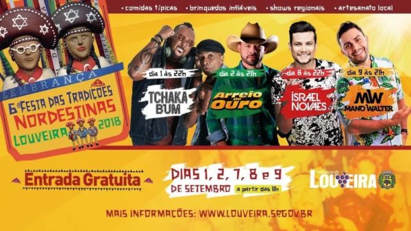 Começa neste sábado (1), a 6ª Festa das Tradições Nordestinas na Área de Lazer do Trabalhador, em LOUVEIRA. A programação, entre shows, atividades e comidas típicas, começa a partir das 11h e a entrada é gratuita.