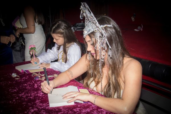 A autora, Carolina Giacomin, concede autógrafos no evento