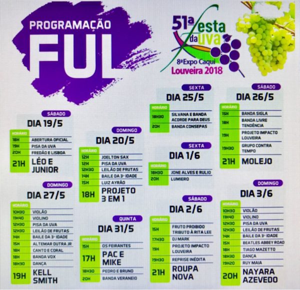 LOUVEIRA: Confira a Programação da Festa da Uva que começa neste sábado