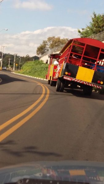 Uma imagem que flagra um ‘trenzinho de Natal’ quase tombando nas ruas de LOUVEIRA, deixou assustados muitos louveirenses que tem utilizado o transporte até a Vila do Papai Noel na Área de Lazer do trabalhador, em LOUVEIRA. O fato ocorreu ontem, na tarde de terça-feira (12), e algumas crianças estavam a bordo. Nesta semana, usuários já haviam reclamado da falta de segurança dos ‘trenzinhos’ contratados pela Prefeitura de LOUVEIRA, sendo que uma delas quase havia caído, quando a carroceria completou uma curva. “É uma vergonha a Prefeitura não fiscalizar esse tipo de transporte. Tem que verificar se tem peças soltas. Quando faz curva ele levanta sempre. Não dá pra ir, nem de graça. Olha que perigo!”, contou Fátima Baldo Raimundo, entrevistada pela FOLHA, na chegada do ‘trenzinho’ na Vila do Papai Noel. Nas redes sociais muitos criticaram o veículo. “Está totalmente torto. Andei nesse com minhas filhas, e estava morrendo de medo”, escreveu Andrea Cardoso. “Semana passada ele estava batido em um carro”, apontou Jonatas Alves. “É o trem fantasma do Junior Finamore”, brincou Cleber Machado Porto. O ‘trenzinho’ faz passeio nos arredores da cidade, levando gratuitamente, as pessoas de um lugar para outro. A Prefeitura de LOUVEIRA, até a manhã de hoje (quarta-feira), ainda não havia se manifestado sobre o perigo envolvendo este tipo de transporte.