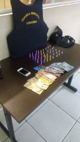 Em patrulhamento na madrugada de quinta-feira (26), pelo Bairro Santo Antônio, em LOUVEIRA, a Romu 117, com o inspetor Paulo César, Capacci e Flávio, observaram um indivíduo que estava na varanda de um bar fechado, na Rua Dalvo Luiz Martins Cruz, em atitude suspeita. Mas, ao avistar a viatura, desceu correndo o morro, jogando drogas e dinheiro. Com apoio das viaturas 108, com subinspetora Juliana, e GM Xavier, com a viatira 112, tendo os GMs Scarpinelli e Maciel, o rapaz foi alcançado e detido. Revistado, foram encontrados com ele R$ 682, em dinheiro, 20 tubetes de cocaína e 22 de crack. Levado para a Delegacia de LOUVEIRA, o jovem, morador do jardim Tamoio, Jundiaí, foi preso em flagrante por tráfico de drogas.