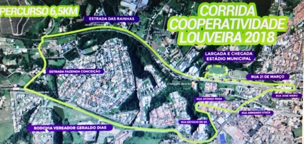 A corrida começa às 8h no Estádio Municipal Vice-Prefeito José Silveira Nunes e passa pelas ruas 21 de Março, José Niero, Armando Steck, Afonso Pena, Estácio de Sá, Rodovia Vereador Geraldo Dias, Estrada Fazenda Conceição e Estrada das Rainhas. A Secretaria de Esporte fica na Estrada Miguel Bossi, 358, bairro Capivari. Telefone3878-1357 ou 3878-3233.