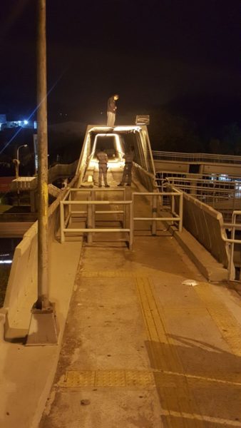 Mais uma tentativa de suicídio foi registrada na Passarela entre o Bairro Santo Antônio e Restaurante Frango Assado na Rodovia Anhanguera, em LOUVEIRA. Policiais militares foram alertados por volta da 1 hora da madrugada desta segunda-feira (2) sobre um rapaz que estava em cima do gradil da passarela com a intenção de pular de uma altura de 15 metros. Segundo testemunhas, o homem gritava que iria ‘se matar’ e aparentava estar embriagado. Também havia amarrado uma corda entre a coluna da grade e seu pescoço. As primeiras viaturas da PM que chegaram ao local do fato, a Viatura I- 49210 com o cabo Wacheisk e soldado Gilliard, e a Viatura I-49202 com soldados Lacerda e Janderson, já partiram ao socorro da vítima. A equipe da PM começou então as negociações para acalmá-lo e tirar o louveirense desta situação. Enquanto isso, chegaram os bombeiros, ambulâncias da AutoBan e Santa Casa de LOUVEIRA, além da Polícia Rodoviária, que fechou parte da Rodovia, para garantir a segurança de todos. Depois de uma hora de muito diálogo, e observando que mesmo assim, ele iria saltar, os PMs Gilliard e Janderson seguraram os pés e pernas do suicida, entre os vãos das grades, enquanto o sargento Serafin subiu e o agarrou. Os PMs Wacheisk e Lacerda também escalaram a estrutura para dar apoio ao sargento, pois o autor deu muito trabalho para ser imobilizado, evitando que caísse na Rodovia Anhanguera. A ocorrência contou com dez viaturas, entre Forças Policiais, Ambulância, Bombeiros e CCR AutoBan. Este é o terceiro caso de tentativa de suicídio na passarela. Outros dois foram registrados na ponte ao lado.