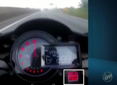 motociclista que estava no acostamento, mostra a velocidade da moto no trecho.