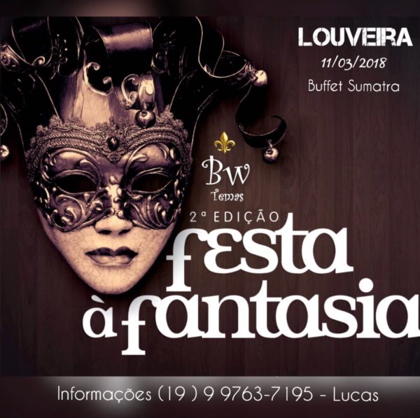 No dia 11/03 à partir das 15h30, a BW produções estará realizando um grande evento no Interior Paulista, a 2ª edição da festa a Fantasia no Buffet Sumatra. Uma festa cheia de muito glamour e azaração.