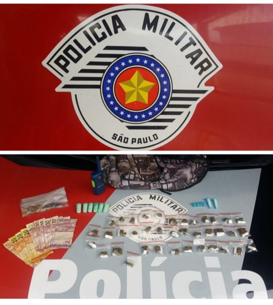 Em patrulhamento pela rua Armando Pereira Dutra, no bairro Estiva, em LOUVEIRA, na tarde de ontem (17), os PMs Araújo e Lacerda, avistaram três indivíduos em atitude suspeita. Assim que a viatura parou, um deles jogou a mochila que carregava atrás de uma cerca. Abordados e revistados, os PMs recuperaram a mochila que continha 38 papelotes de maconha; 08 Tubetes de cocaína; 04 Tubetes de Crack; R$ 170, em notas e moedas, além de um Radio Comunicador. O rapaz que jogou a mochila assumiu o tráfico de entorpecentes. De imediato, os PMs o algemaram e o mesmo foi preso pelo crime de tráfico. Os outros detidos contaram que estavam no local para comprar drogas. Ambos foram conduzidos à Delegacia de Polícia de LOUVEIRA e arrolados como testemunhas, sendo liberados em seguida. O traficante está preso. (Fonte: Polícia Militar de LOUVEIRA)