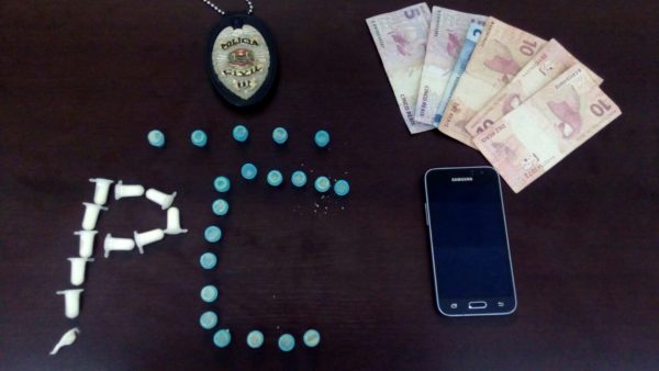 O Setor de Investigações da Delegacia e Polícia de LOUVEIRA apreendeu na tarde de ontem, quinta-feira (1), um menor envolvido em roubos e tráfico de drogas na cidade. Ele e seus comparsas maiores de idade, que foram presos em outras operações, agiam de forma sorrateira, entrando em pequenas lojas e mercados e anunciando o assalto. Rapidamente, levavam dinheiro do caixa e mercadorias. Alguns dos crimes praticados foram registrados por câmeras de segurança dos estabelecimentos, o que ajudou nas investigações. O menor foi surpreendido pelos policiais civis em sua residência, no bairro Santo Antônio, e coincidentemente, vestia a camiseta que utilizou durante um dos roubos praticados. Com ele, havia drogas e dinheiro proveniente do tráfico.
