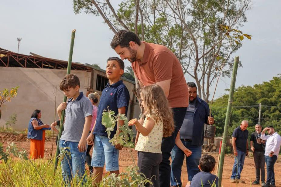 “Cada árvore que estamos plantando hoje é um presente para o futuro” disse o Prefeito Paulo Finamore, emocionado ao ver a dedicação das crianças.