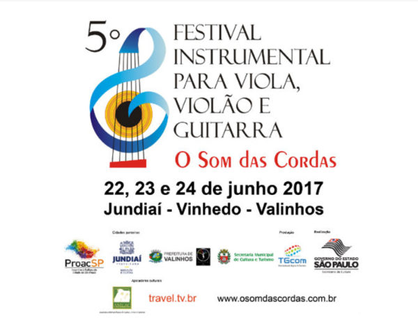 Estão abertas as inscrições para o “5º Festival de Música Instrumental para Viola, Violão e Guitarra – O som das cordas” que será realizado nos dias 22, 23 e 24 de junho em diversos locais das cidades de Jundiaí, Vinhedo e Valinhos. Para se inscrever, os músicos interessados devem acessar ao site www.osomdascordas.com.br e preencher o formulário online. O regulamento também pode ser baixado no site.