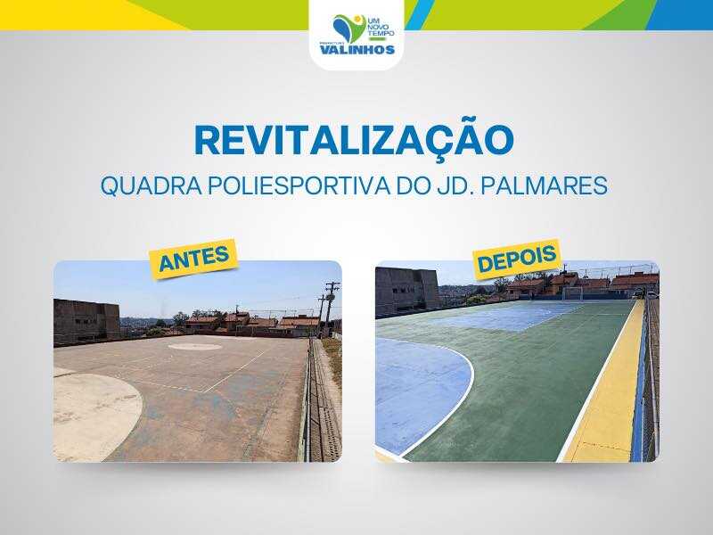 A Prefeitura de Valinhos, por meio da Secretaria de Esportes e Lazer (SEL), está realizando mutirões de revitalização em quadras poliesportivas de diversos bairros do município. Com recursos e equipes próprias, já foram concluídos os serviços de repintura completa das quadras do Jardim Jurema e do Jardim Palmares, esta finalizada na quinta-feira (25).