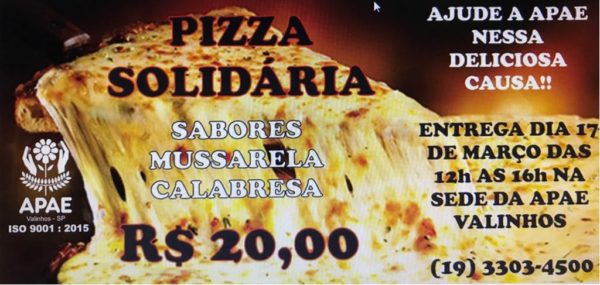 VALINHOS: Sábado tem Pizza Solidária da APAE