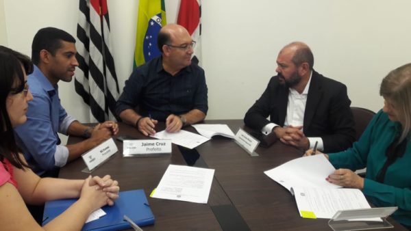 VINHEDO, a partir desta hoje, se torna o ‘1º polo do INSS Digital do Estado de São Paulo’. O convênio, inédito no Estado, foi assinado nesta manhã de quinta-feira (22), pelo prefeito Jaime Cruz (PSDB), na presença de José Carlos Oliveira, superintendente Regional do INSS, e do presidente da Câmara de Vereadores de VINHEDO, Nil Ramos (PSDB), representando o Legislativo. Também participaram do evento o secretário de Governo, Edison Ruiz; a Gerente Executiva do INSS Jundiaí, Valéria Nicolassa Serbino das Neves; a Chefe do Atendimento do INSS Jundiaí, Aline Jasevicius Anaruma; e a técnica de Atendimento do INSS Jundiaí, Priscila de Souza Ferreira.