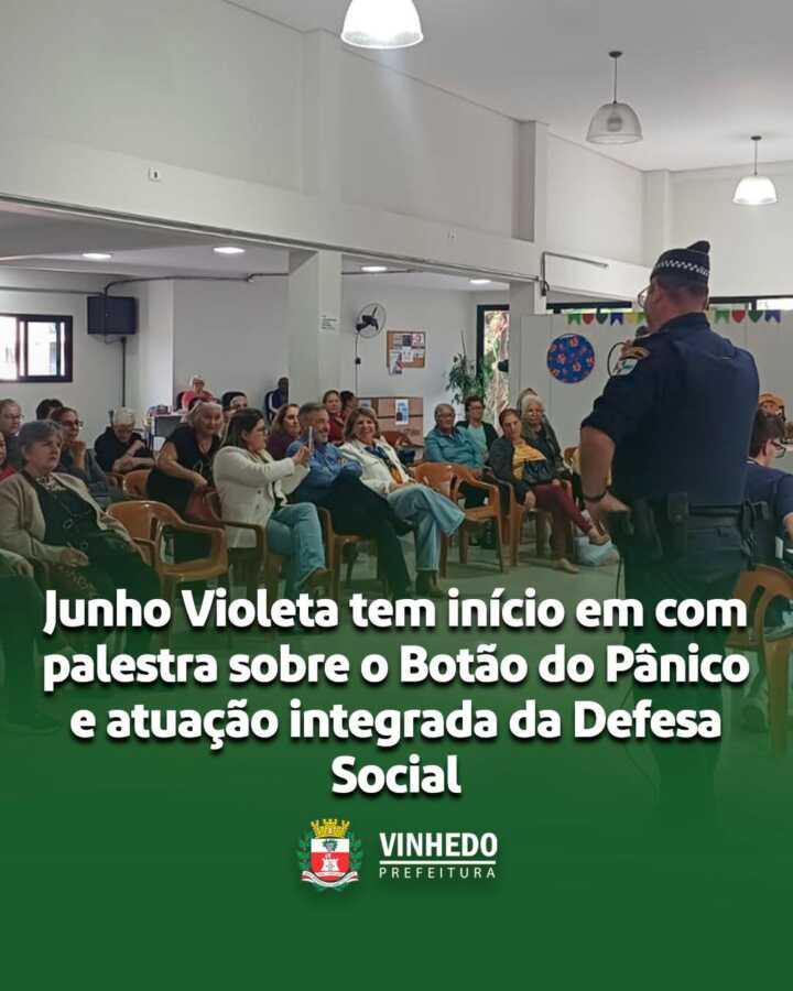 A Prefeitura de Vinhedo deu início à programação oficial do Junho Violeta, campanha de conscientização e combate à violência contra a pessoa idosa. A abertura foi marcada por uma palestra sobre o uso do Botão do Pânico, realizada no Núcleo de Atendimento Intersecretarias (NAI), no bairro Capela.